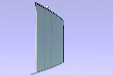 The most challenging mechanical element in the project was the large, curved, glass living room patio door. Tucked very tightly under the massive arched concrete ceiling, the door travels in a curved, upward-slopping path between decorative concrete ornaments with highly tight clearance. The original 1960s design had a minimalist but heavy steel frame carrying 400 pounds of glass in the span between slim vertical elements. The 12'x 12' door originally rode on half nuts along a 24' flexible, threaded shaft, itself supported in a curved, inclined channel across the ceiling. A motor in the basement drove the shaft through a system of gearboxes and a flexible shaft. After almost 50 years, this unique system had become very slow and noisy and finally failed early in the project.